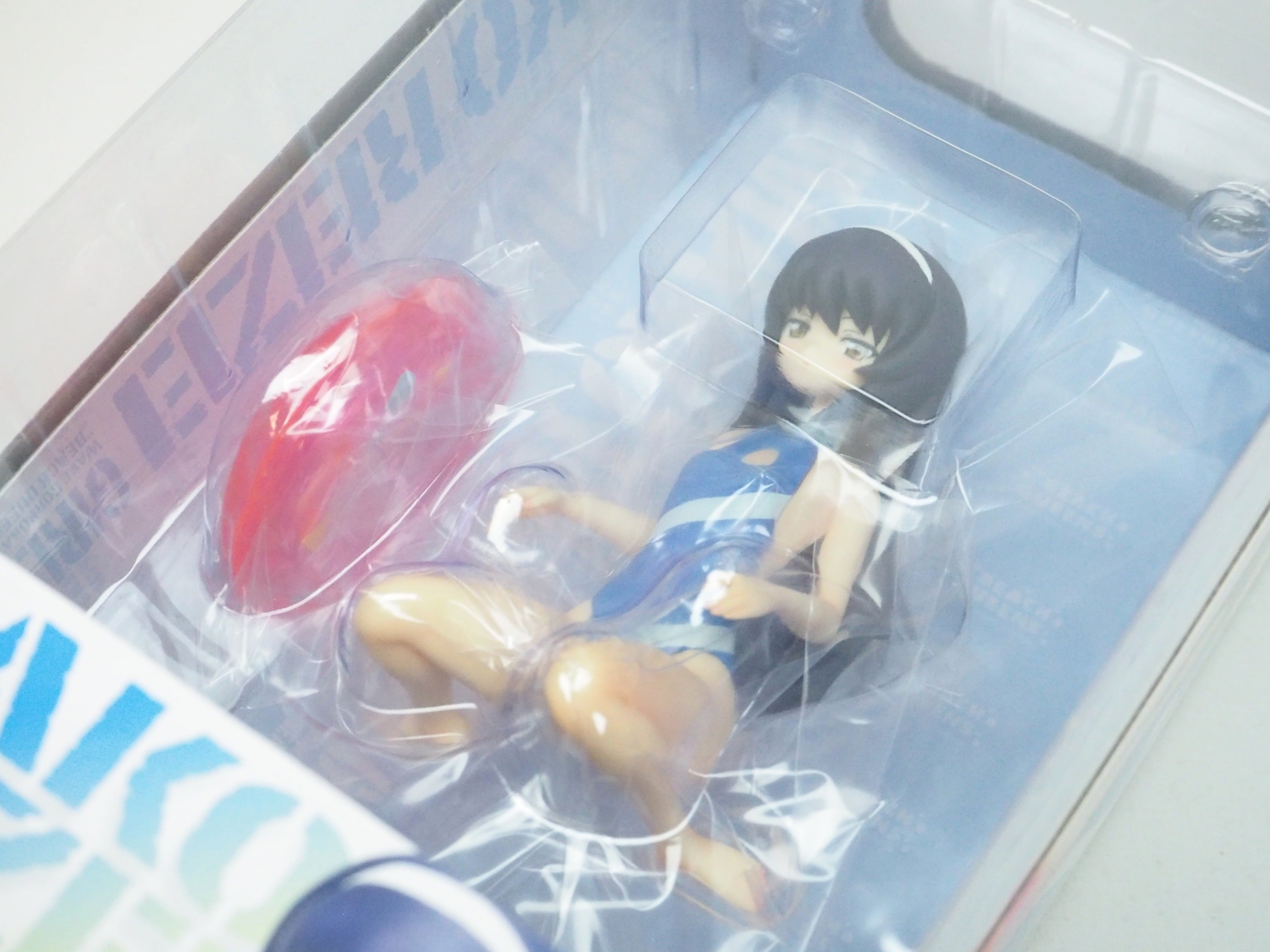 OVA「ウォーター・ウォー!」で沢山着せ替えさせられた末に決定した水着で、小柄な麻子のサイズはそのままに、浮き輪を持ってぺたんと少しねむそうにフィギュア化しました。